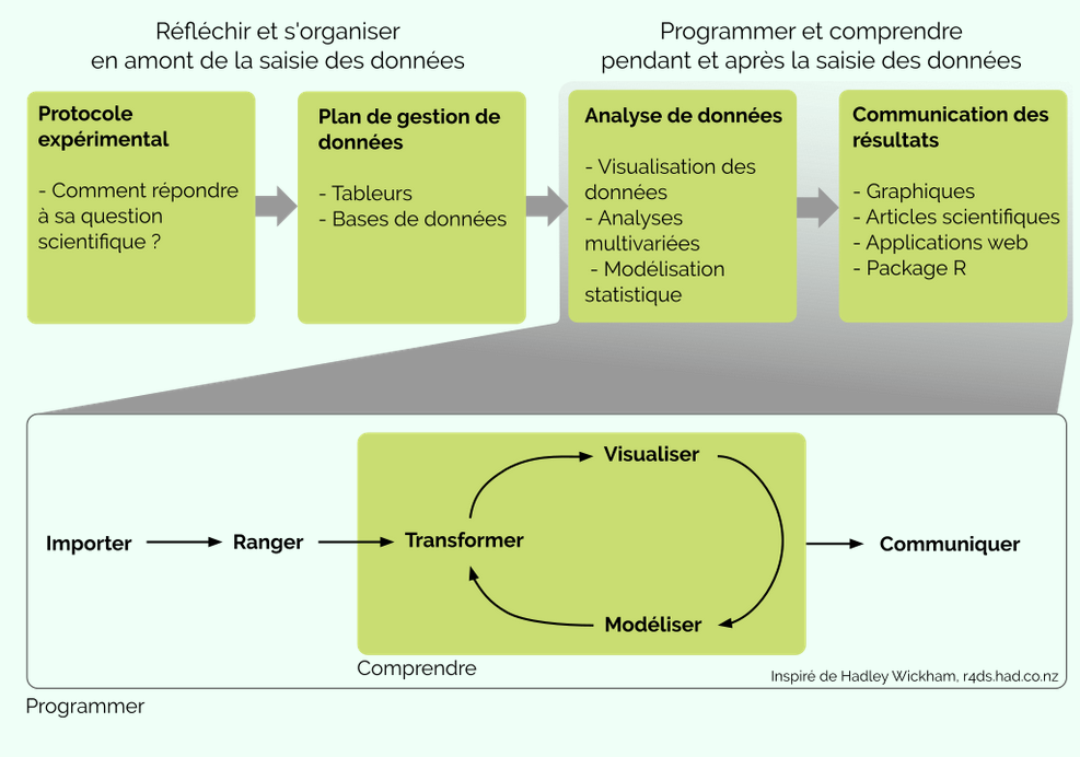 Formez-vous avec vos équipes à utiliser R, à acquérir des méthodes de travail reproductibles, à prendre soin de la mise en place de vos projets de recherche.